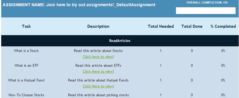 You can create unlimited assignments for each contest, so feel free to add a new “Place 5 trades” or “Make 3 limit orders” every week, and just remove the old assignments after the week is over!