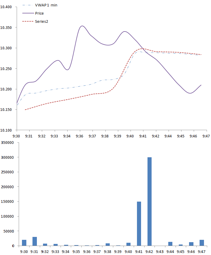 | Volume | Price | Price * Vol | Time | VWAP 1 min |