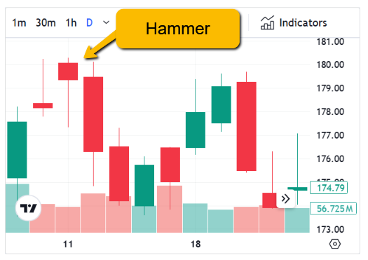 In the picture, we see a classic candlestick pattern called a hammer. What happened to cause this? The stock opened, then at some point the sellers took control of the stock and pushed it lower. Many traders were shorting this stock thinking it was headed lower.